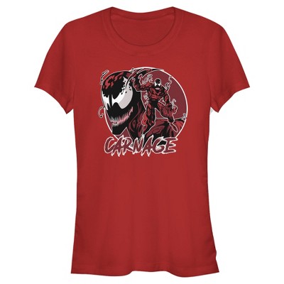 Juniors Womens Marvel Venom Carnage Mask Circle T-Shirt