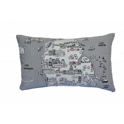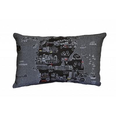 14" X 24" Dark Gray And White Lumbar Michigan Hometown Pride Wool Throw Pillow with Embroidery