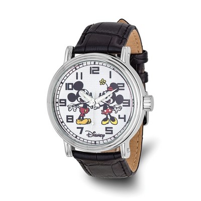 Black Bow Jewelry Disney Ladies Size Mickey & Minnie Black Leather Watch