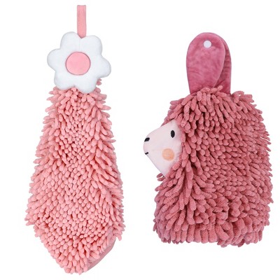 REGALWOVEN Soft Absorbent Flower Pattern and Sheep Pattern Chenille Hand Towel with Loop 6" x 15"/7" x 11" 2 Pcs