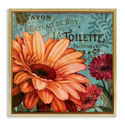 Stupell Industries Daisies with Antique French Backdrop Floating Frame Canvas Art, Gold, 25" x 25"