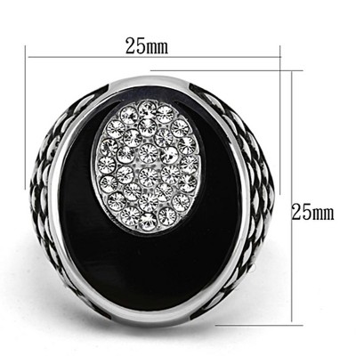 Slickblue Men's Stainless Steel Ring, Rectangular Jet Onyx, Clear Accents, Polished Silver Tone, size 8-13