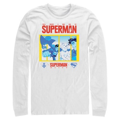 Mens Superman Retro Planet Logo Long Sleeve Shirt