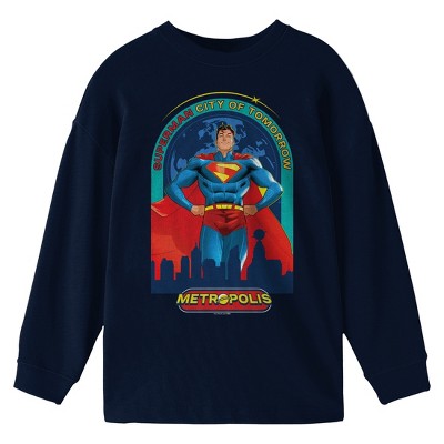 Superman Movie 2025 Superhero, Man of Steel, DC Comics, Superpowers, Crypto, S, Metropolis, City of Tomorrow on Navy Long Sleeve Youth T-Shirt