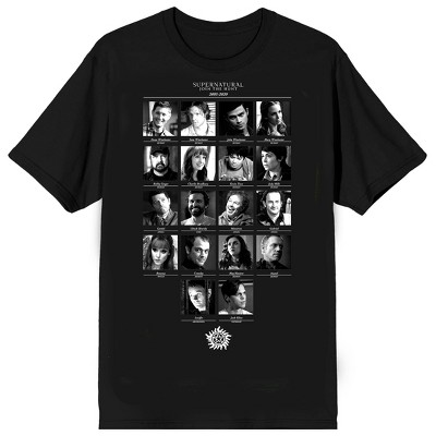 Supernatural Black & White Character Grid Adult Black Crew Neck Short Sleeve T-shirt