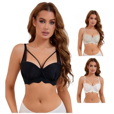 INSPIRE CHIC 3 Pcs Women's V-Neck Mesh Wirefree Adjustable Straps U Back Minimizers Bras
