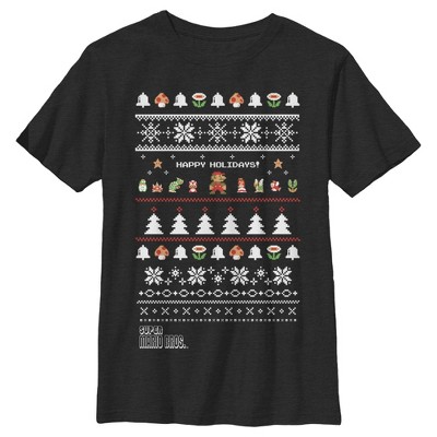 Boy's Nintendo Ugly Christmas Super Mario Happy Holidays T-Shirt