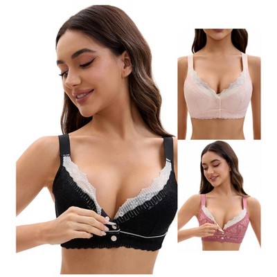 INSPIRE CHIC Nursing Bra for Women's Push Up Wirefree Front Closure Comfortable Maternity Bralette 3 Packs