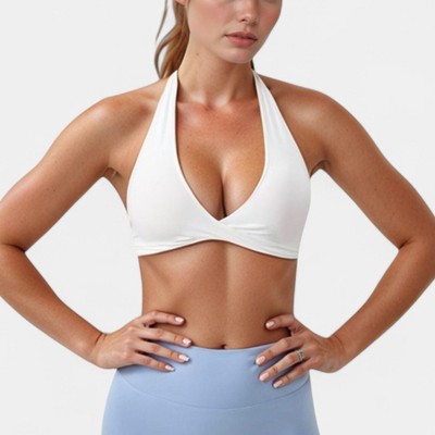 Anna-Kaci Active Women's High Neck Halter Open Back Sports Bra Padded Seamless Yoga Top for Running, Gym, and Fitness Training