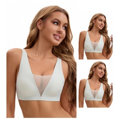 INSPIRE CHIC Women's Deep V Push Up Wirefree Seamless Mesh Plunge Bras Light and Breathable Minimizers 3 Packs