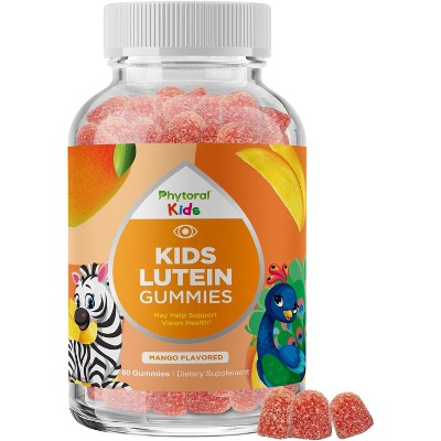 Kids Lutein Gummies, Lutein & Zeaxanthin Supplement for Blue Light Protection, Dryness, Strain Support & Visual Sharpness, Mango, Phytoral, 60ct