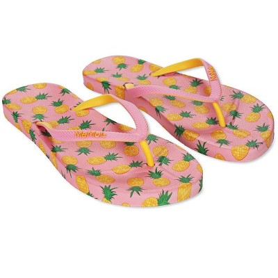 Memoi Women's Pineapple Flip Flops & Mesh Bag Set