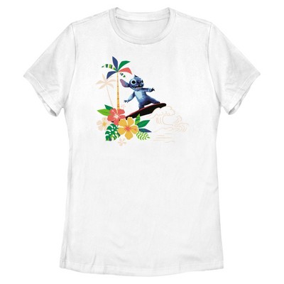 Womens Lilo & Stitch Surfing And Flowers T Shirt