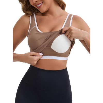 INSPIRE CHIC Women's Lace Mesh V-Back Wide Strap Fixed Cup Tank Longline Light and Breathable Camisoles 2 Packs