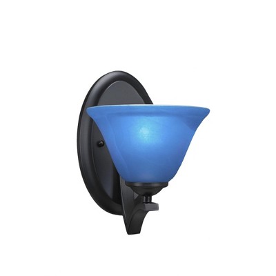 Toltec Lighting Zilo 1 - Light Sconce in Matte Black with 7" Blue Italian Shade
