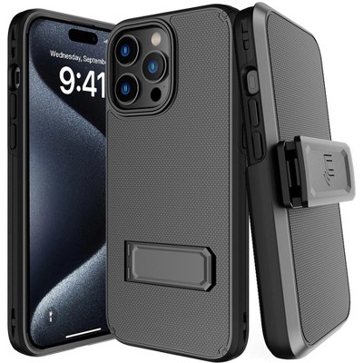 Nakedcellphone Combo for iPhone 15 Pro Max - Rugged Phone Cover with Stand and Belt Clip Holster