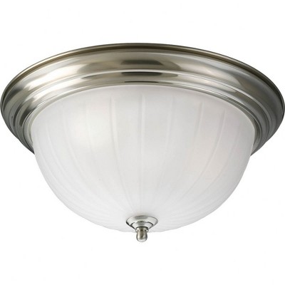 Progress Lighting Melon 2-Light Flush Mount, Brushed Nickel, Alabaster Glass Shade