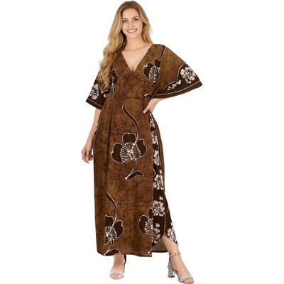 LA LEELA Womens Summer Maxi Nightdress Cover Up Gown Caftan Loungewear Dashiki House Dresses for Women 3X-4X Brown, Floral