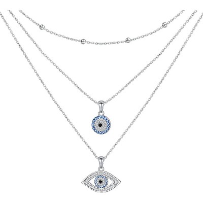 SmallRig S925 Sterling Silver Multilayer Layered Triple Chain Pendant Necklace for Women