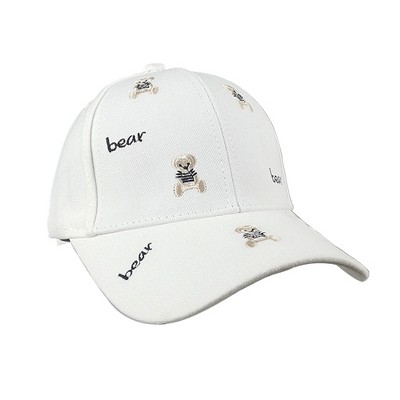 Anna-Kaci Women's Bear Embroidered Baseball Cap Low Bun Large Head Circumference Soft Cotton Trucker Hat