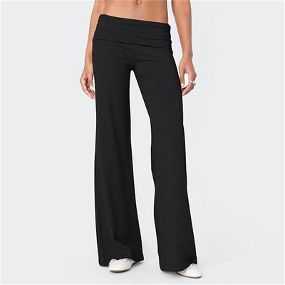 Coolmee Fold Over Yoga Pants for Women Low Rise Straight Leg Sweatpants Stretchy Loose Gym Lounge Leggings