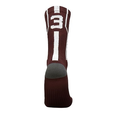 Mk Socks Player ID Jersey Number SINGLE Crew Sock - Maroon, White