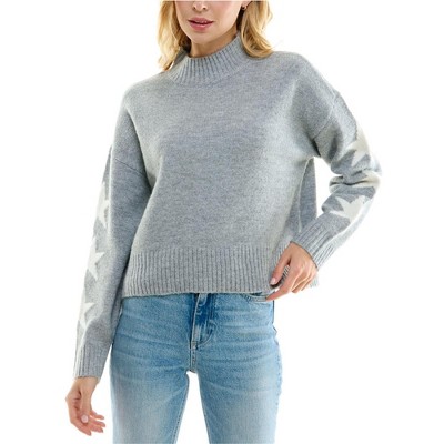 Ultra Flirt Womens Stars Mock Turtleneck Knit Sweater