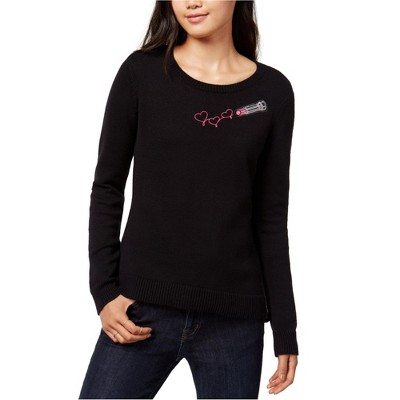 maison Jules Womens Embroidered Lipstick Knit Sweater