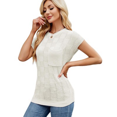 Womens Summer Spring Casual Cap Sleeve Sweater Vest Crewneck Short Sleeve Sweaters Trendy Knit Tops