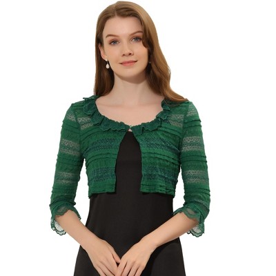 Women Plus Size Open Front Cardigan 3/4 Sleeve Cropped Bolero Shrug Cardigan Sweater