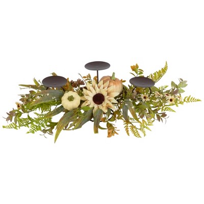 Northlight Sunflower and Pumpkins Fall Harvest Triple Candle Holder - 28"
