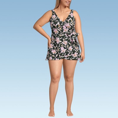 Lands' End Women's Plus Size SlenderSuit Grecian Mini Swim Dress - 20W - Black