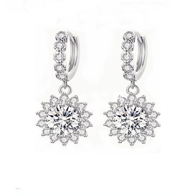 Sterling Silver Moissanite Snowflake Drop Earrings White Gold Plated Hoop Dangle Jewelry for Women