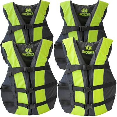 Hardcore life jacket 4 pack paddle vest for adults with Type IV Boat Cushion; Coast Guard approved Type III PFD life vest flotation device