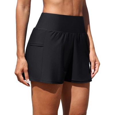 Charmo Women's High Waisted Swim Bottom Hidden Pockets Board Shorts Swim Shorts