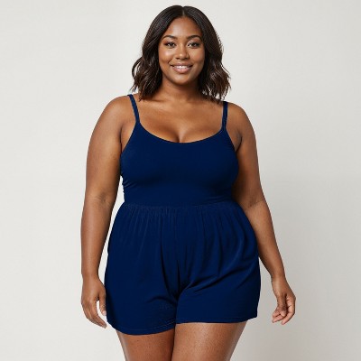 Calypsa Women's Plus Size Alana Wrap-Style Swim Dress With Hidden Bottoms and Adjustable Straps