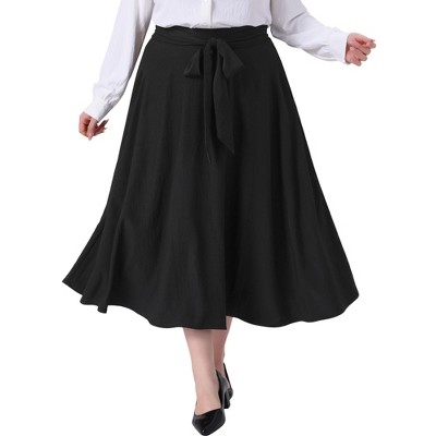 Women's Plus Size Tie Knot High Waist Flowy Swing Business Casual A-Line Maxi Skirts with Pockets - Agnes Orinda