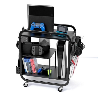 ZACHVO Metal Gaming Station Organizer with 4 Straps, 6 Hooks & 2 Handles, Storage Rack for PS5/PS4/Xbox/Switch Accessories,Black