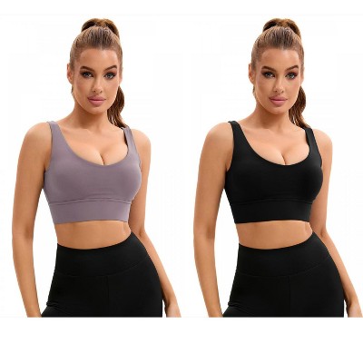 INSPIRE CHIC 2 Pcs Women's U Back V-Neck Padded Workout Crop Top with Built-in Bra Sports Bras