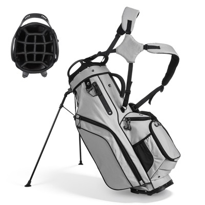 Gymax Portable Golf Stand Bag w/ 14-Way Top Dividers 6 Spacious Pockets Insulated Cooler Bag Rain Hood Umbrella Holder Dual Strap Blue/Gray/Red