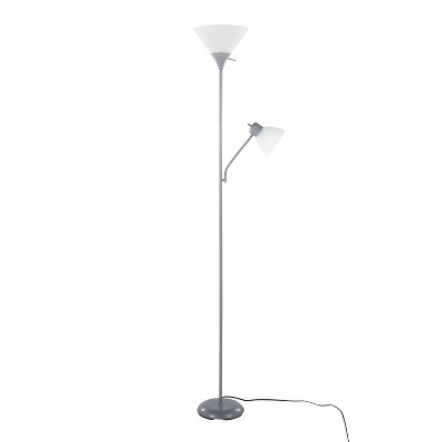 LumiSource Dual 72" Contemporary Metal Floor Lamp in Silver Metal/Frosted White Plastic Shades