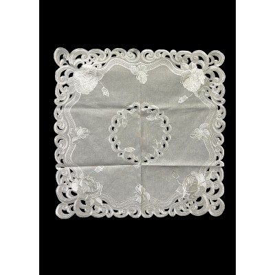 Jiallo Silver Rose Embroidered Cutwork Square tablecloth, 36 inch Square Table Linen Decor, Water Resistance, Machine Wash safe