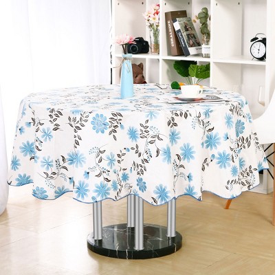 PiccoCasa Round Vinyl Water Oil Resistant Printed Tablecloths Blue Flower 70" Dia