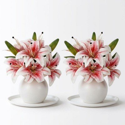 Garvee Home 2-Pack Artificial Tiger Lily Flowers with Vase, Faux Silk Real Touch Centerpiece Decor, White