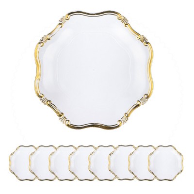 ChicFurnit Dining Plates 8 PCS Plastic Plates Decorative Dinner Plate Dinnerware Sets Dish Set for Home Kitchen and Party Use, Gold, 13"*13"*0.8"