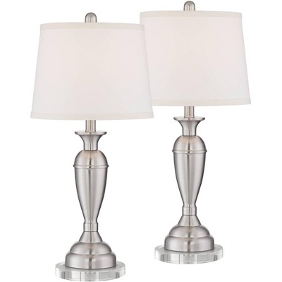 360 Lighting Evan Modern Table Lamps Set of 2 with Clear Risers 28 1/2" Tall Brushed Nickel with USB Charging Port White Shade for Bedroom Living Room