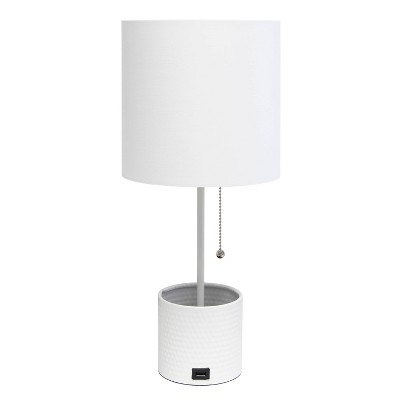 Hammered Metal Organizer Table Lamp with USB Charging Port and Fabric Shade - Simple Designs