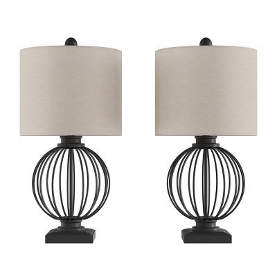 28.5" Contemporary Arc with Hanging Pendulum Metal Table Lamp Black - Ore International: Transitional Design, Dual Drum Shade, UL Listed