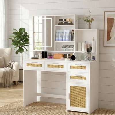 Airsurfer Vanity Tables with Lighted Mirror, White Vanity Table Illuminated Makeup Vanity Table Modern Dressing Table for Bedroom