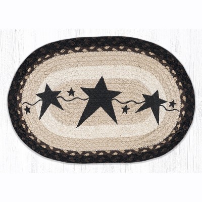Earth Rugs Primitive Star Black Oval Placemat 13"x19" – Hand-Stenciled Braided Jute Table Mat with Americana Design